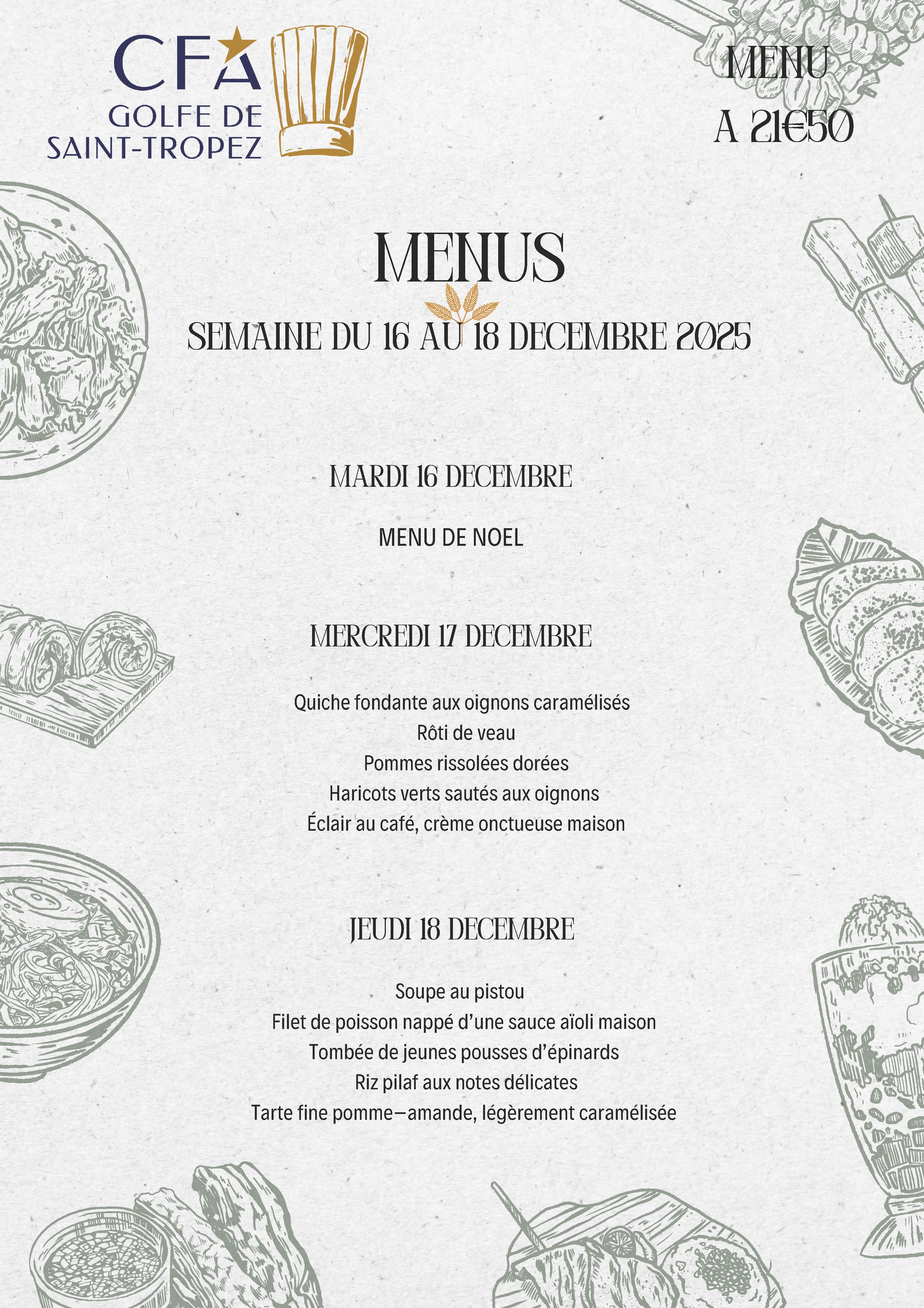 Bienvenue dans notre restaurant pédagogique ! Ouvert les mardi, mercredi et jeudi au sein du CFA du Golfe de Saint-Tropez, notre établissement offre une expérience culinaire unique, où les apprentis en formation dans les métiers de la restauration et de l’hôtellerie ont l’opportunité de mettre en pratique leur savoir-faire.